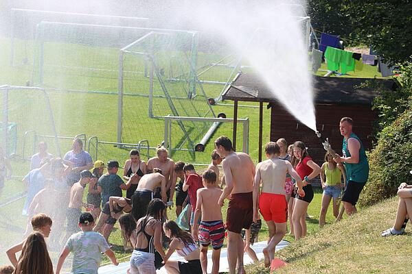 Unseren zehnten GrunZ-Tag konnten wir ganz entspannt und gemütlich mit ausschlafen starten. Bis 11:30 Uhr gab es offenes Frühstück und jede*r konnte den Tag ganz nach eigenen Vorstellungen starten. Während die einen die Möglichkeit nutzten, um möglichst lange zu schlafen, wurden die anderen schon früh von der morgendlichen Hitze aus ihren stickigen Zelten getrieben. In der Halle konnte dann nach Lust und Laune gefrühstückt werden, während nebenbei Magic oder Kniffel Duelle liefen. Bei 28 Grad gab es dann schon vor dem Mittagessen die erste kleine Wasserschlacht auf dem Lagerplatz. Doch auch die Vorbereitungen für die Hochzeit am selben Abend mussten getroffen werden und es wurden fleißig Ringe für die bevorstehende Trauung gebastelt. Nach einem leckeren Mittag ging es dann gestärkt in das Tabaluga-Stationsspiel, dachten zumindest die Kinder. Die Betreuenden hingegen hatten bei den Temperaturen mehr Lust auf eine dicke Wasserschlacht und somit wurden alle Kinder auf dem A-Platz versammelt und mit Wasserrutsche, Wasserbomben und Feuerwehrschlauch überrascht. Der restliche Tag wurde mit Poolparty und Lagertänzen verbracht. Was für ein Traum! Nach einer Stärkung beim Abendbrot ging es dann in die Zelte für einen schnellen Outfitwechsel. Das Motto des Abends: Hochzeit - und dafür muss man ja auch irgendwie schick gemacht sein. Voller Vorfreude und Aufregung versammelten sich dann alle auf dem Lagerplatz, gespannt darauf wie die Hochzeit ablaufen und wer denn nun wen heiraten würde. Viele Hochzeiten später beendeten wir den Abend dann mit DJ Heiko und einer kleinen Disco in Schnarup. Während es für die jüngeren Lakis ab ins Bett ging wurden die ältesten Lakis für ihre Verabschiedung abgeholt. Bei Lagerfeuer, Kerzenschein und Kakao wurden gemeinsame Erinnerungen an die letzten Jahre geteilt, zusammen gesungen und einige Tränen vergossen. Nach vielen schönen Momenten, Reden und Mit einem lachenden und einem weinenden Auge hieß es dann auch für die ältesten „Piwaz“.
