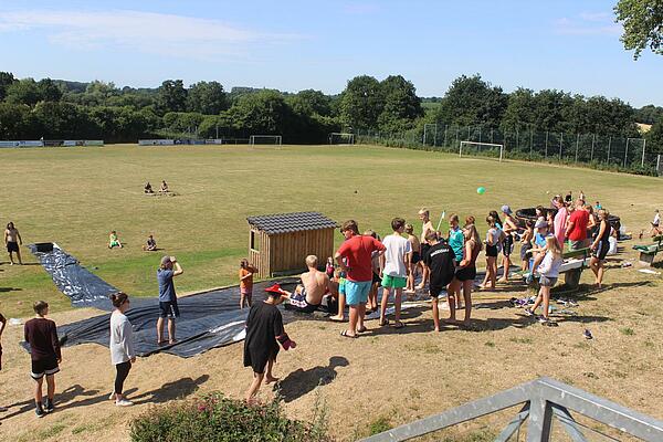 Anstelle eines Großspiels oder eines AG-Blocks am Nachmittag, gab es heute erstmals eine Nachmittags-Show. In dieser traten unsere sieben Betreuer-Geschwisterpaare gegeneinander an und kämpften um die Ehre ihrer Familie. Die Zelte durften zu Beginn jeder Runde Punkte setzen und tippen, welche Geschwister die nächste Übung wohl am besten absolvieren würden.