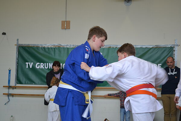 Nach einem gemeinsamen spielerischen Aufwärmen und ein paar Begrüßungsworten konnten die ersten Kämpfe endlich starten. In acht verschiedenen Gewichtsklassen durften die Kämpferinnen und Kämpfer all ihr Können zeigen und beweisen. Zusammen mit vielen Eltern und anderen Besuchern sahen wir viele spannende Duelle mit großartigen Techniken im Standkampf, aber auch im Bodenkampf. Max Paspergilis (TVG) und Holger Schaffer (SV Adelby) übernahmen die Kampfrichteraufgaben und sammelten wertvolle Erfahrungen bei ihrer Tätigkeit. Unterstütz wurde das Duo durch die Kampftischbesetzung bestehend aus Lea, Christoph und Jörg (alle TVG).