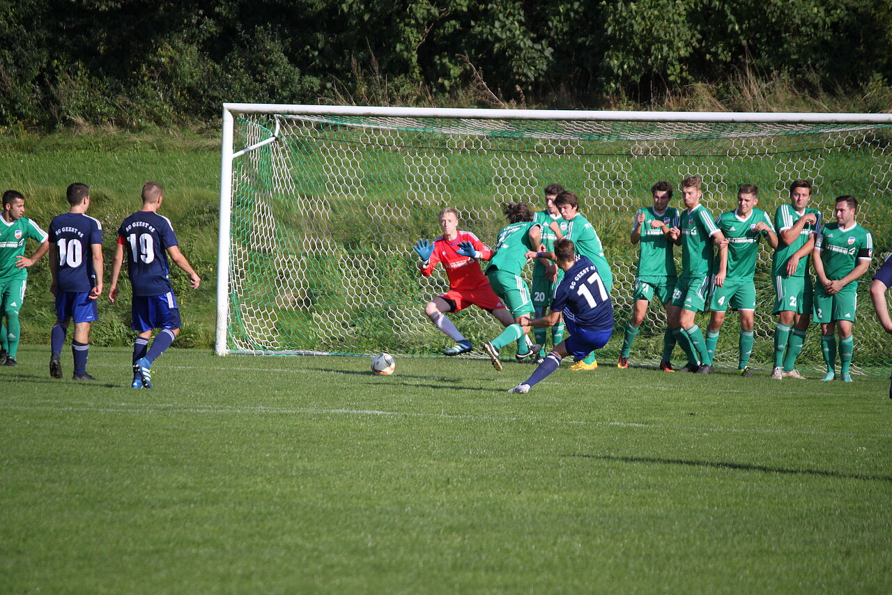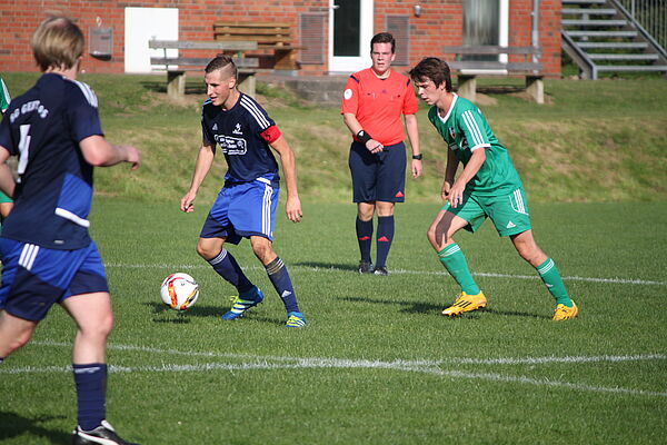 In der Anfangsphase hatten beide Mannschaften zunächst kleinere Möglichkeiten. Beide Defensivreihen waren aber aufmerksam, so dass sich wenig Hochkarätiges ereignete. Erst als Torhüter Lukas Oehme einen Rückpass von Maik Jessen in die Hand nahm, wurde es brenzlig. Den fälligen indirekten Freistoß versenkte Tim Wlotkowski zum 0:1 (25.). In der Folgezeit hatte Grundhof die besseren Möglichkeiten. Doch Levin Exner köpfte direkt auf Torhüter Arne Steinhagen (40.), Niels Broderius schoss stramm am rechten Pfosten vorbei (44.). „Dicki“ Freier schoss drüber (49.). Zudem wurden die Abschlüsse von Chris Lemm (45.) und Hadi Mortazawi (54.) zur sicheren Beute von Steinhagen. Die Riesenchance zum Ausgleich vergab Lemm, als er nach einem schönen Angriff über Exner und Freier freistehend an Steinhagen scheiterte (55.). Wie aus dem Nichts fiel das 0:2. Mit einem sehenswerten Schuss aus 18 Metern traf Dennis Papenfuß für die SG (59.). Nach einem tollen Freistoß von York Brodersen parierte Steinhagen auch den Abschluss von Ruwen Beismann mit dem Fuß, den Abpraller köpfte Broderius wieder in die Gefahrenzone und Beismann drückte den Ball zum 1:2 über die Linie (70.). Die beste Möglichkeit zum Ausgleich bot sich Brodersen, der mit einem strammen Schuss aus 22 Metern knapp das Tor verfehlte (74.). Als der TVG den Ball in der Vorwärtsbewegung verlor, bestrafte Jan-Martin Kuhrt diesen Fehler mit dem 1:3 (78.). Das war der KO-Schlag für die Heimelf, die sich nun hängen ließ und in den Schlussminuten nach einem Eckball noch das 1:4 durch Jack Lindemann (89.) und nach einem Konter auch noch das 1:5 durch Alexander Splinter (90.+2) hinnehmen musste.